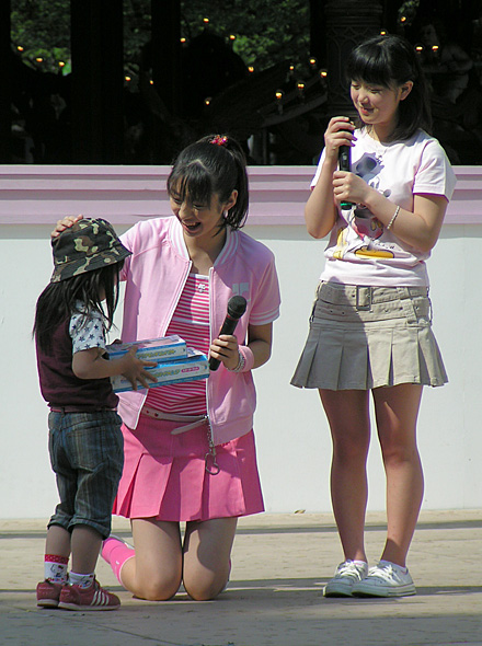 《イベント》小倉優子[14:00-CD"永遠ラブリン(∂∇<)/"ライブ&トーク&握手会@後楽園ラクーアガーデンステージ ap SQUARE] 今日はあんまりいいお天気ではないっていう予報だったのに、ところがドッコイさにあらず、めっちゃ晴れて夏を先取ったカンカン照りの暑ーい一日でした。32度ですか!? ウー…。ゆうこりんを始め、みんなの熱い想いがきっとお天道様に届いたのでしょう。って届き過ぎですけど(ぉ。もしこれが千葉紗子姫のイベントだったら間違いなく雨ですね(ぉ。逆に降らなかったらオカシイって思っちゃうぐらい、ファンもすっかり諦めてますし(ぉ。さすが梅雨の真っ最中の6.23にアルバム「雨女」をリリースする人は違いますな(ぉ。ってごめんなさい。タイトルが嘘です。誰かが言ってたんですもん…。本当は「everything」。これに収録される「さよならソリティア」は超名曲です。フォロー終わり(ぉ。まー炎天下でも雨でもどっちにしても、こんな日に屋外のオープンスペースでのイベントはキツイの一言に尽きますね。とにかく今日はそりゃもー汁ダクダクでしたよ。ゆうこりんは汗かかない人だから違いますけど、今頃みんなのヲタ汁が後楽園の地中深くに染み込んで地下水として流れていることでございましょう(ぉ。まるで秋葉原みたいですにょ。にょ?(ぉ